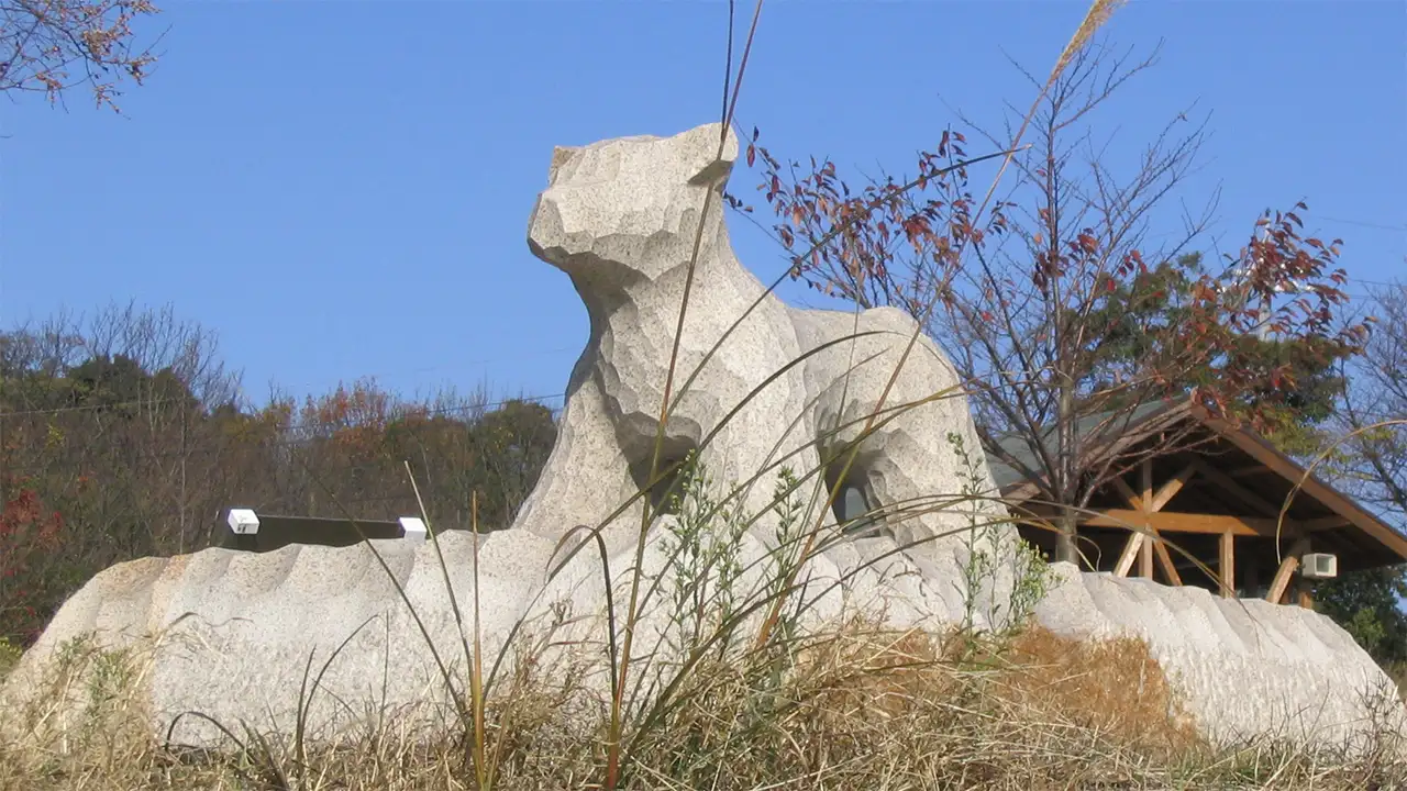 犬の島対岸付近には、巨大な犬のモニュメントがあります。